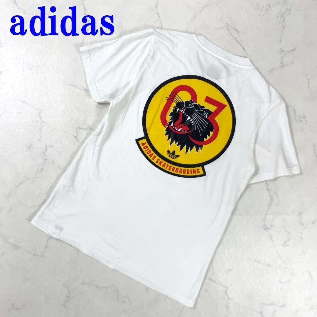 - adidas アディダス 半袖バックプリントTシャツ ホワイトスポーツ ストリート スケボー ユニセックス コットン100% XS C396