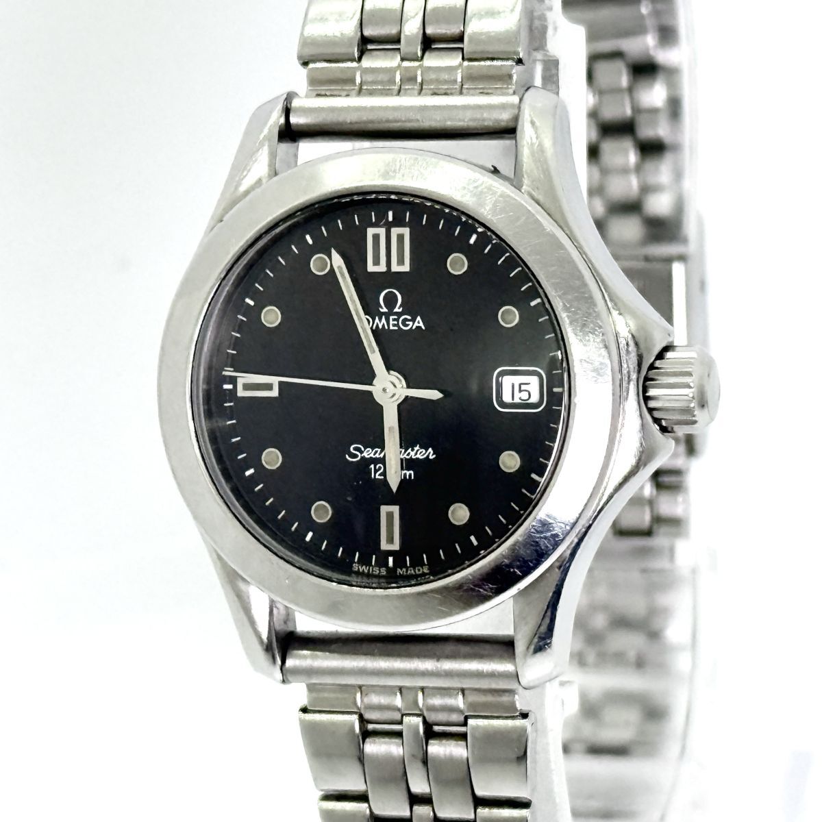 > O4563 OEMGA オメガ SEAMASTER シーマスター 54821264 SS QZ 黒文字盤 純正ベルト付属