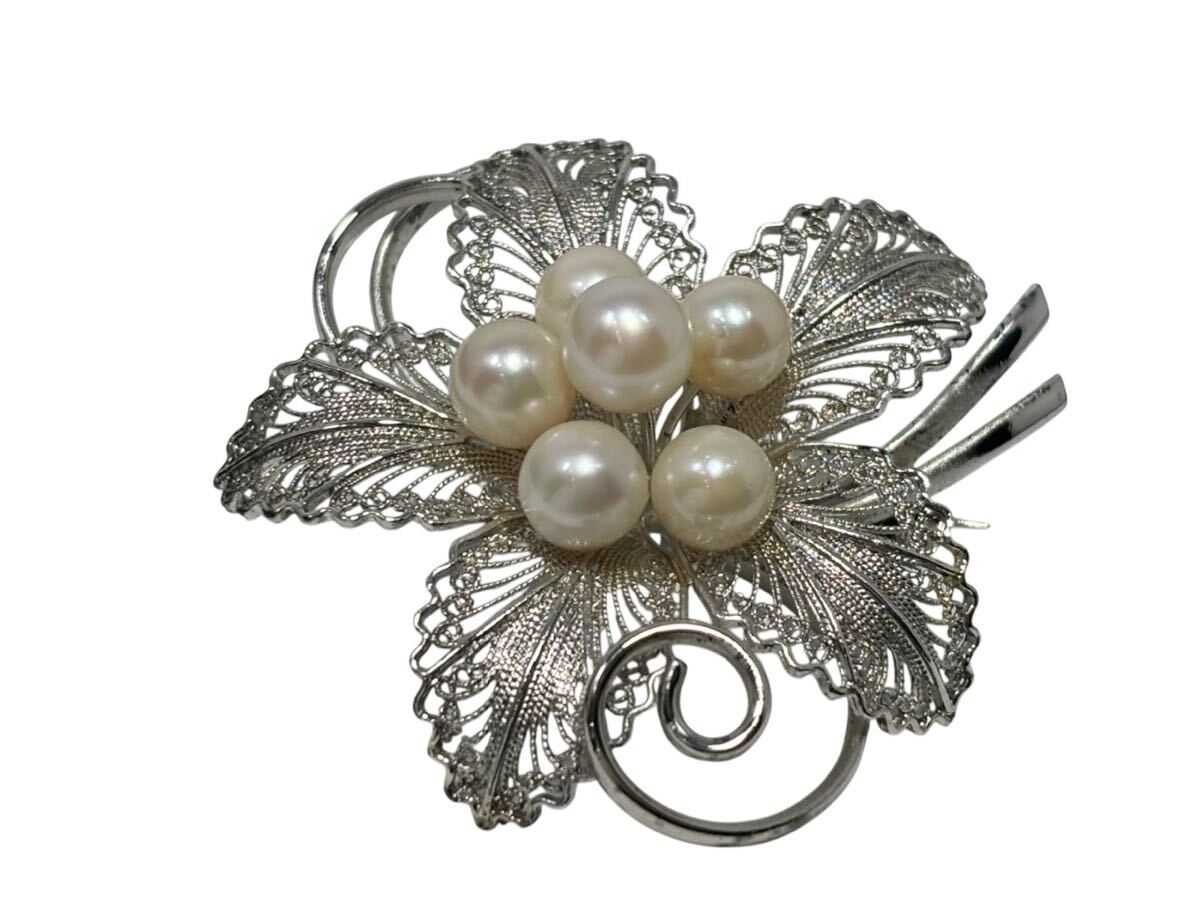 > 【送料無料!!】フェイクパール シルバーカラー 真珠 ブローチ パール レディース アクセサリー コサージュ 7.27mm前後 13.8g
