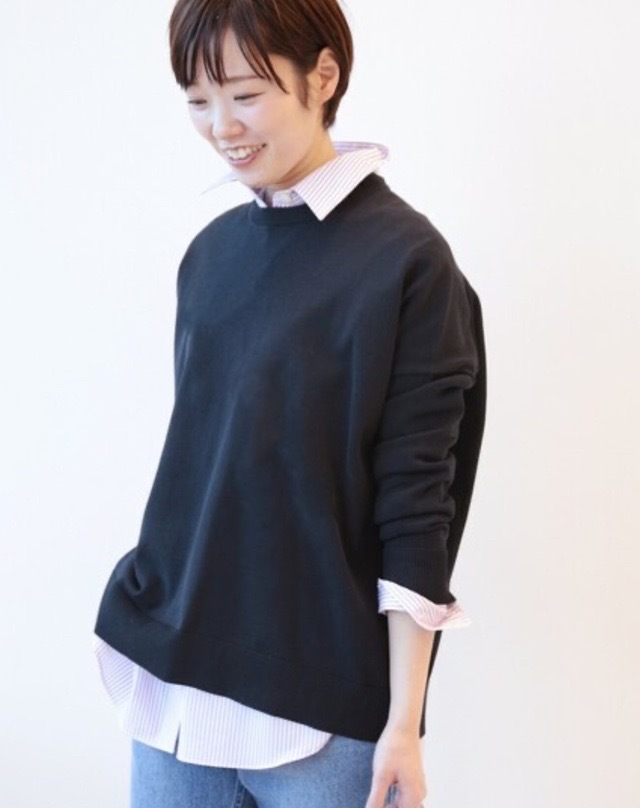 > フレームワークFRAMeWORK HOUSTON SASプルオーバー◆コットンクルーネックニット ドゥーズィエムアローズplageジャーナルIENA ネイビー