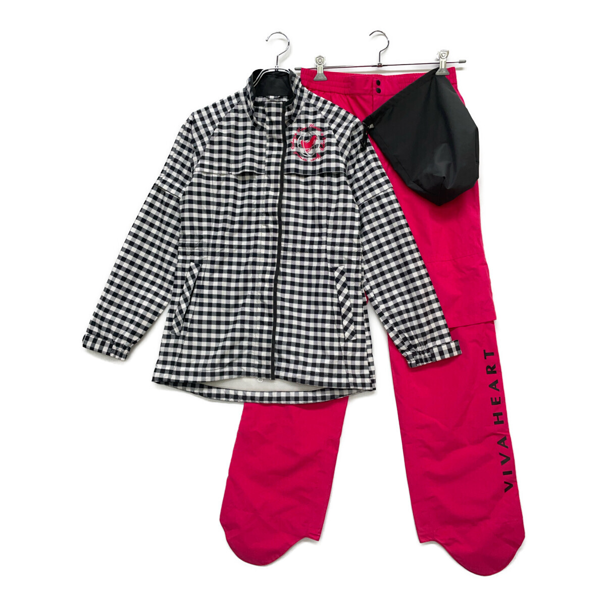 - coco 中古【値下げ】 ビバハート VIVA HEART レディース レインウエア 40(M) 黒×白/ギンガムチェック ピンク 2WAY 収納袋付 92292