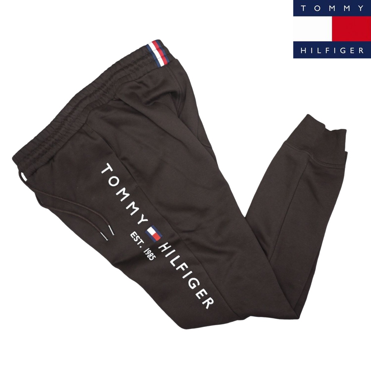 > 新品 トミーヒルフィガー スウェットパンツ (XXL) ブラウン トリコロールライン 刺繍ロゴ TOMMY HILFIGER USAモデル /aa31