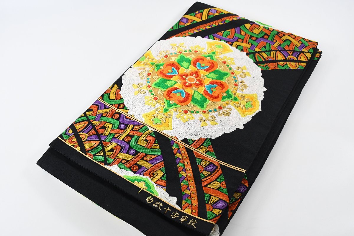 > 袋名古屋帯 六通柄 黒 曼荼羅 帯丈418cm ★着物屋 ne-14781 桜庭呉服店