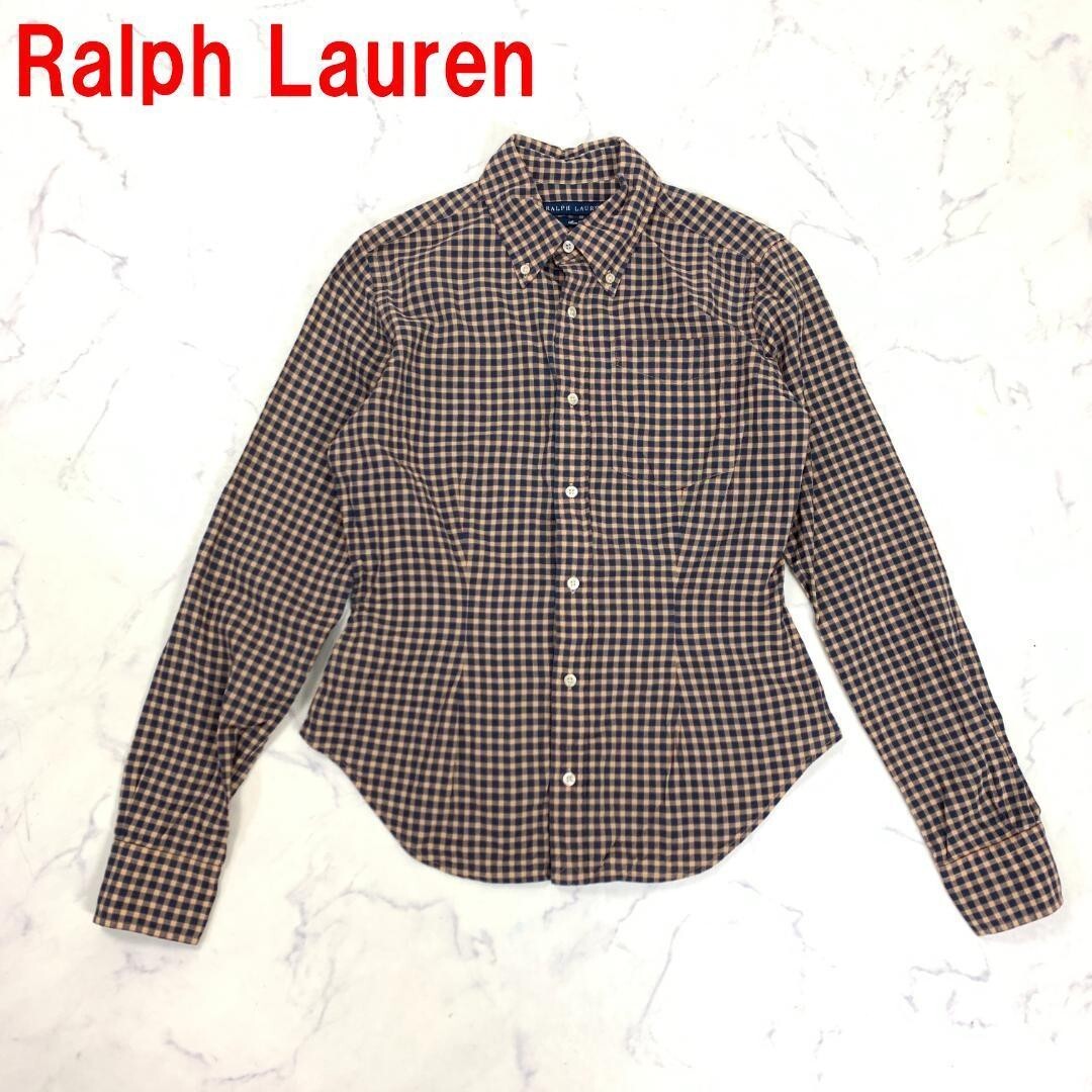 - A5540 ラルフローレン 長袖シャツ ブラウス 綿 チェック Ralph Lauren コットン ボタンダウン ブラウン茶色 紺 9
