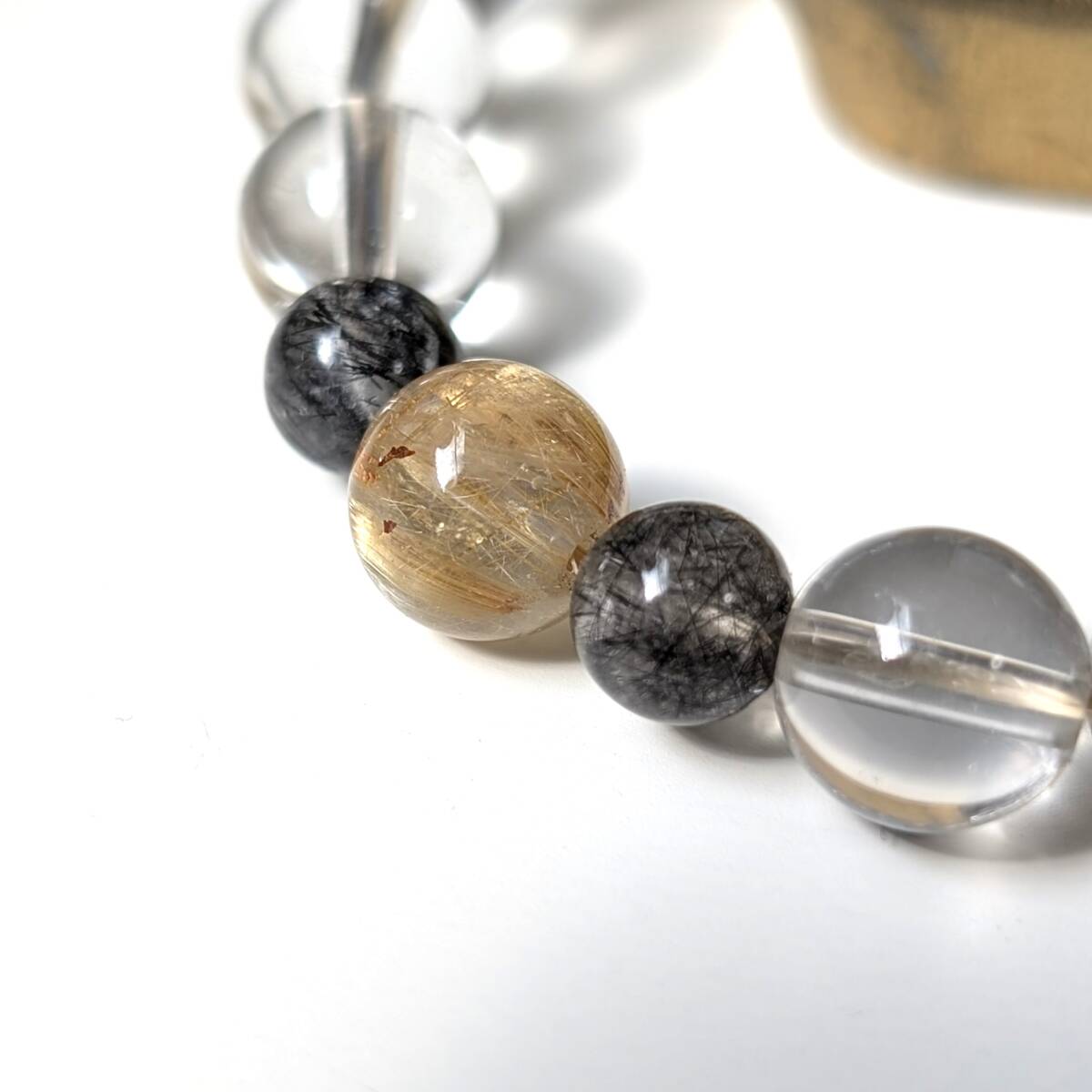 > タイチンルチルを中心にデザイン パワーストーン ブレスレット トルマリンインクォーツ タイガーアイ 水晶 手首のサイズに調節可能 お守り