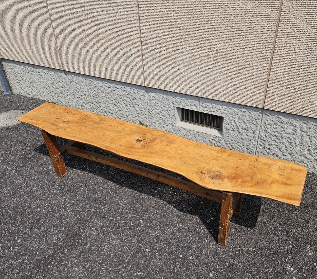 - 一枚板のベンチ 無垢材 欅 長椅子 飾り台 花台 ディスプレイ 棚 作業台 天然木製 ヴィンテージ レトロ ロング 家具