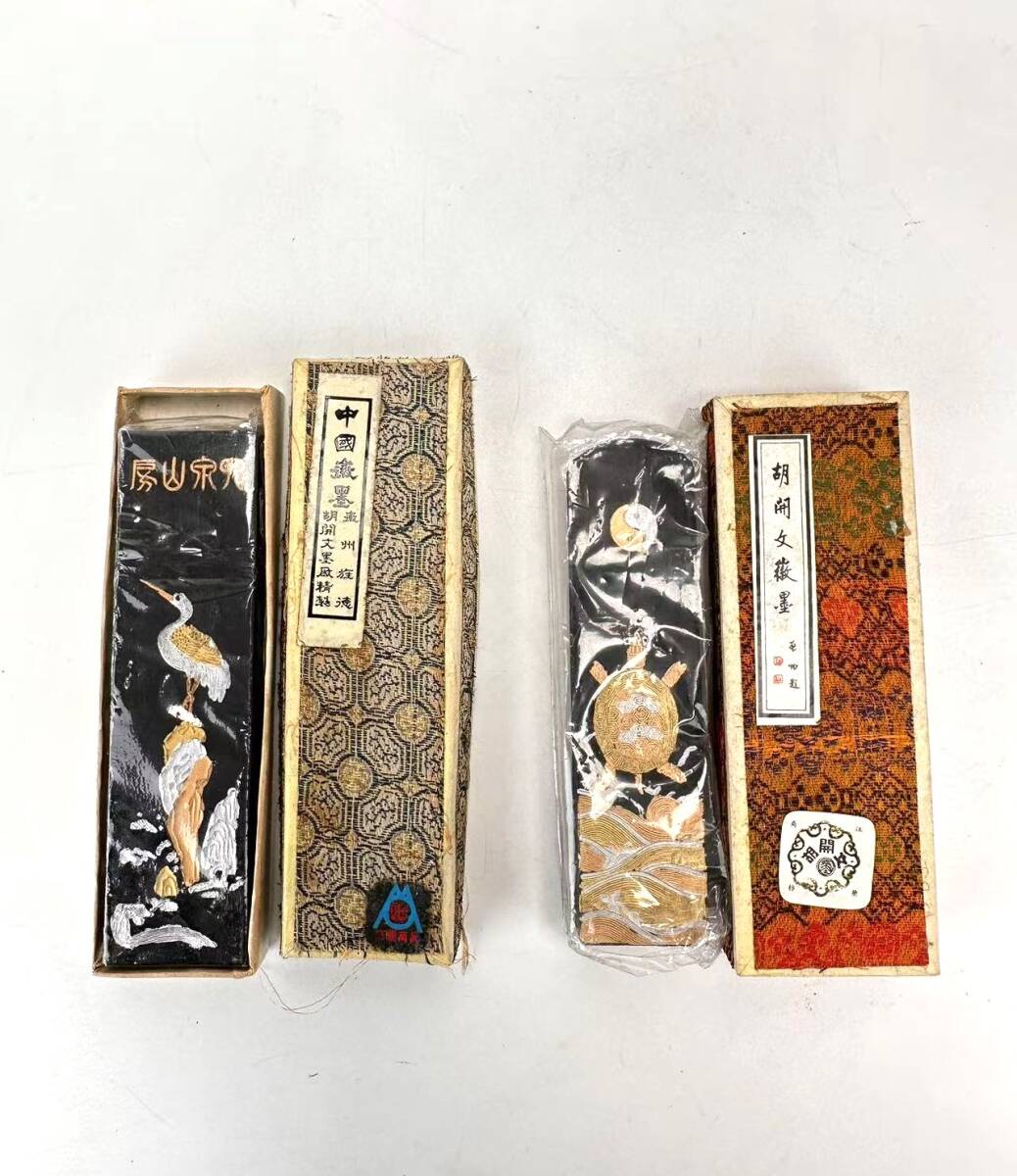 - F53★胡開文 徽州老胡開文製墨 金亀 鶴 墨2点 中国 書道具 墨 未使用品 長期保管品 現状品