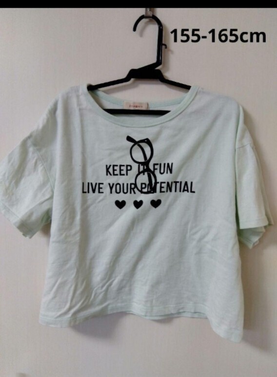 - キッズ女の子Tシャツカットソー 丈短めコットン100% 155-165cm ミントグリーン