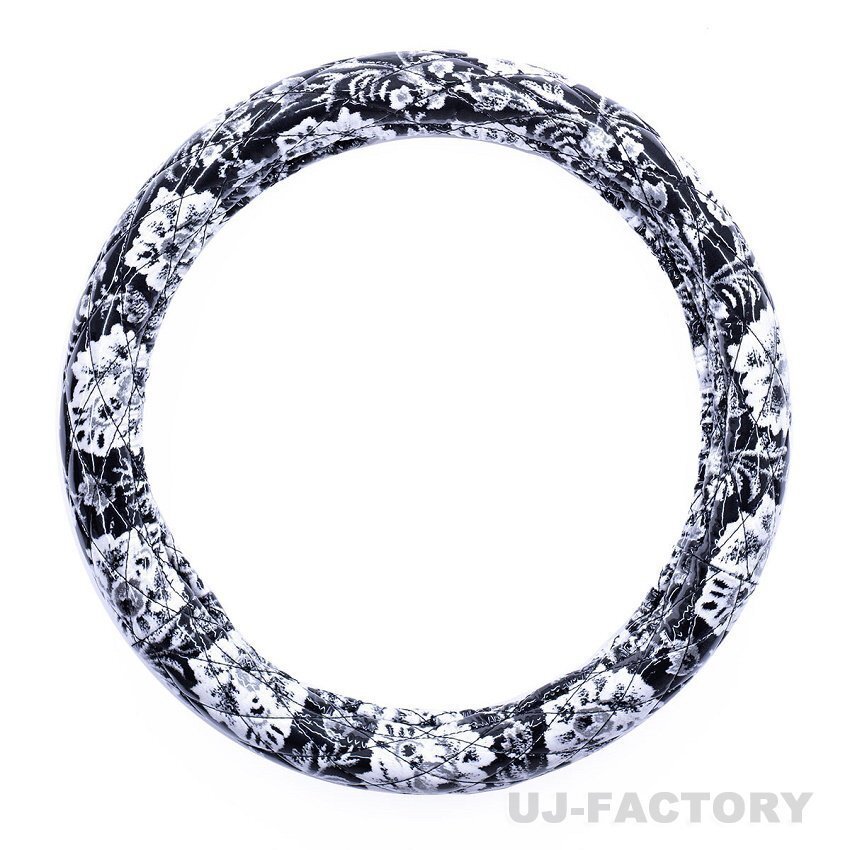 - ★MIYABI/新格子/金華山・シングルキルト ハンドルカバー(ビニール付)ブラック/LMサイズ(40.5cm~41.5cm)★車内をドレスアップ!