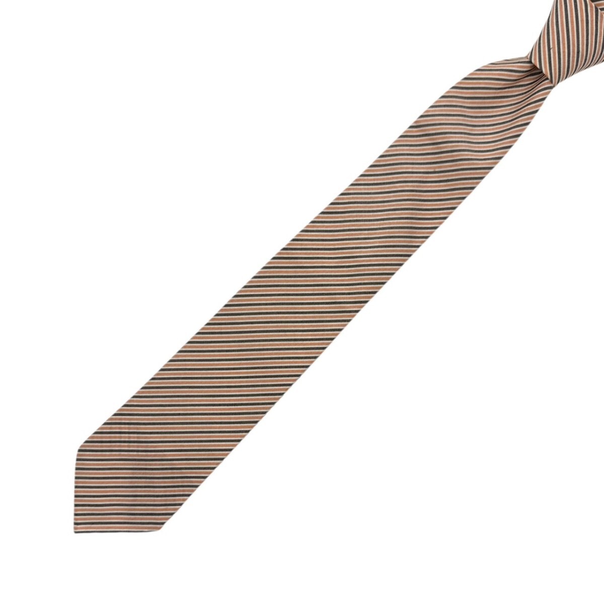 - 未使用 エルメス 薄手 カジュアル ネクタイ レジメンタルタイ フランス製 ホワイト×グレー×オレンジ 25D19