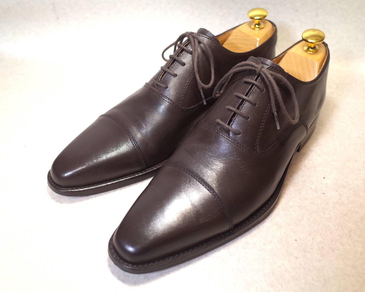 内羽根5アイレットキャップトゥ ストレートチップ レザーシューズ。