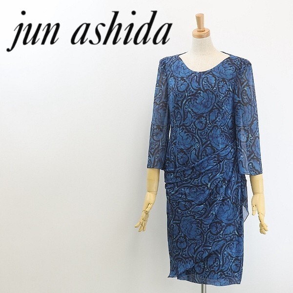 - ◆jun ashida ジュンアシダ シルク100% 総柄 シフォン 七分袖 ドレープ ワンピース 7