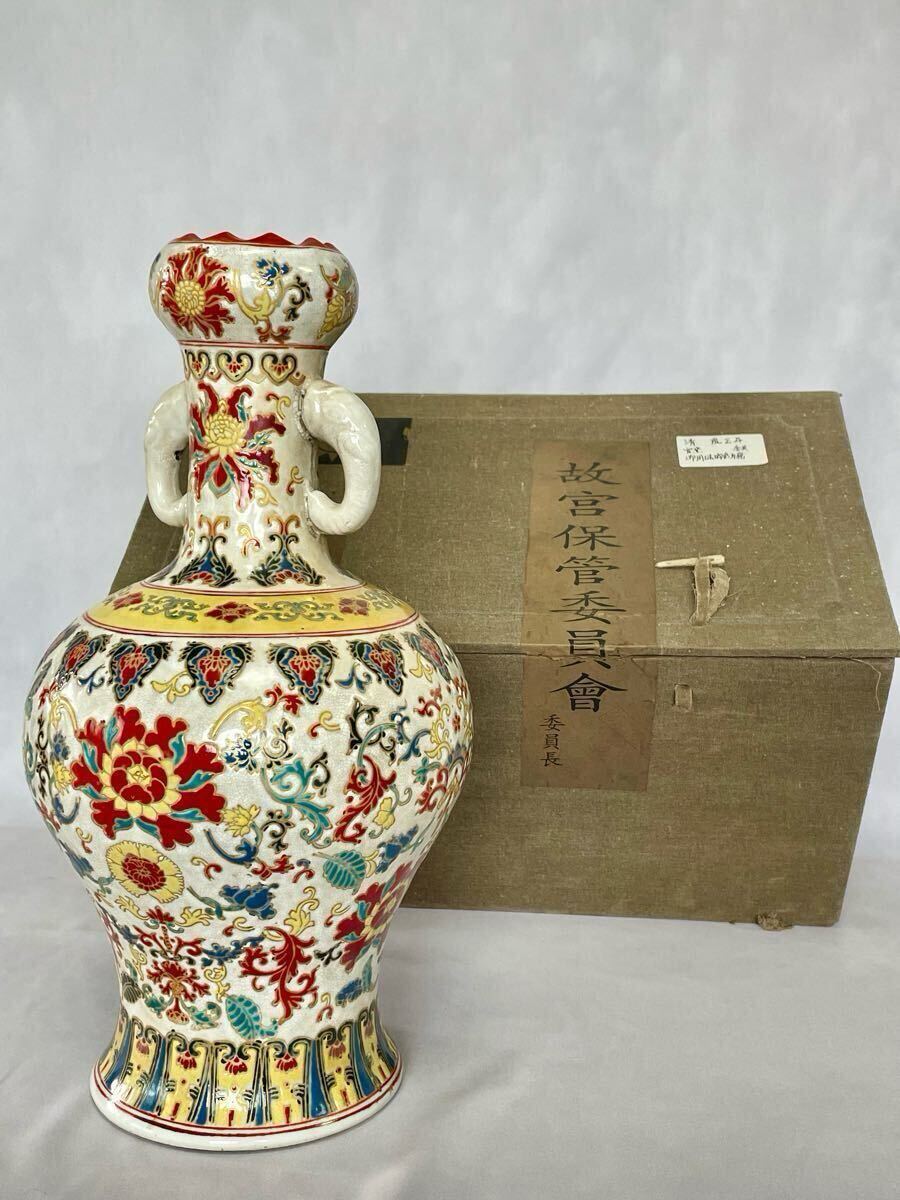 - 【故宮】琺労彩耳瓶 故宮保安委員会 委員長 清雍正元年製 官窯 唐英 共箱 中華中国美術古玩骨董 北平古物陳列所重慶 高さ38胴径19.5口径5cm