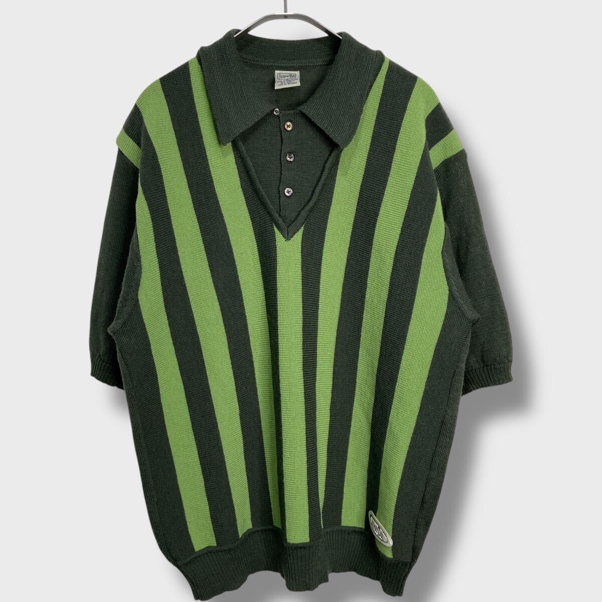 - 送料無料☆90s☆シルバータブ☆リーバイス☆ストライプ柄ニットポロシャツ☆グリーン☆XL