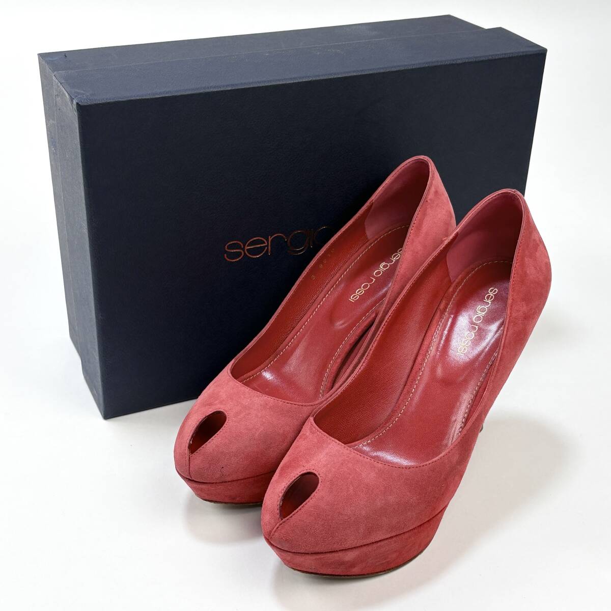 - 美品 sergio rossi / セルジオロッシ カシェ ピープトゥ スエードパンプス 9810 37.5 レッド オープントゥ プラットフォーム SSM4894