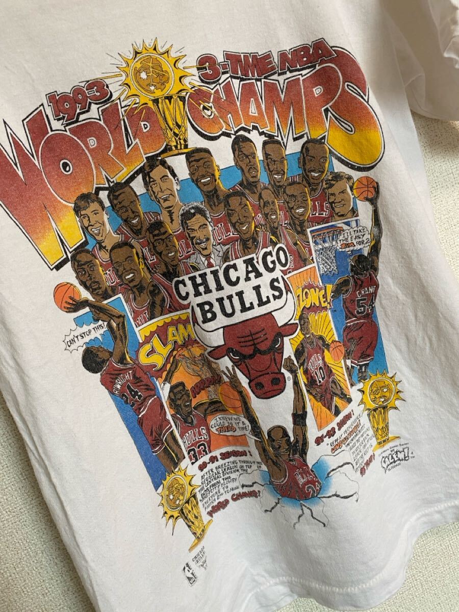 - 90s NBA ブルズ CHICAGO BULLS ワールドチャンピオン Tシャツ USA製 SALEM