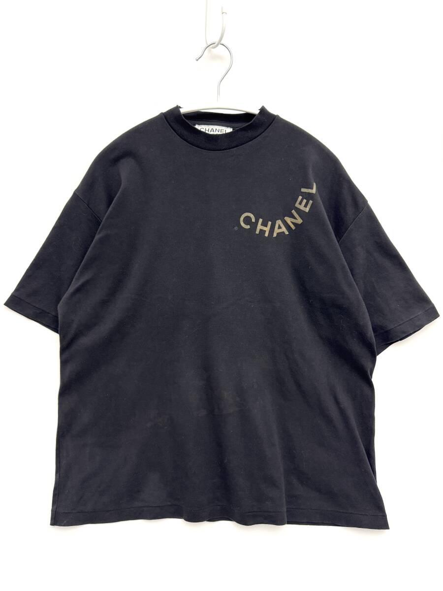 > 7D2004【本物保証】シャネル 半袖 カットソー Tシャツ サークル ロゴ ブラック コットン Lサイズ vintage CHANEL