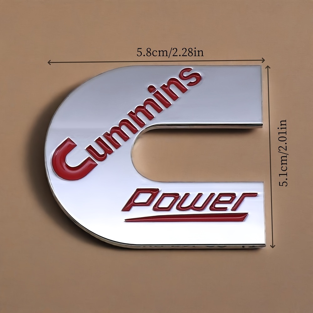 - 金属 ステッカー 車 カミンズ パワー U字 シルバー レッド エンブレム 立体 貼り付け シール 5.8cm メタルステッカー おしゃれ 装飾 t6103