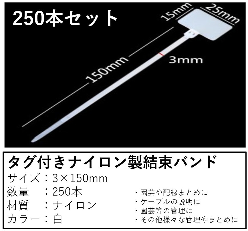 - 【普通郵便送料無料!】タグ付き結束バンド タイラップ インシュロック ナイロン製 3×150mm 250本セット