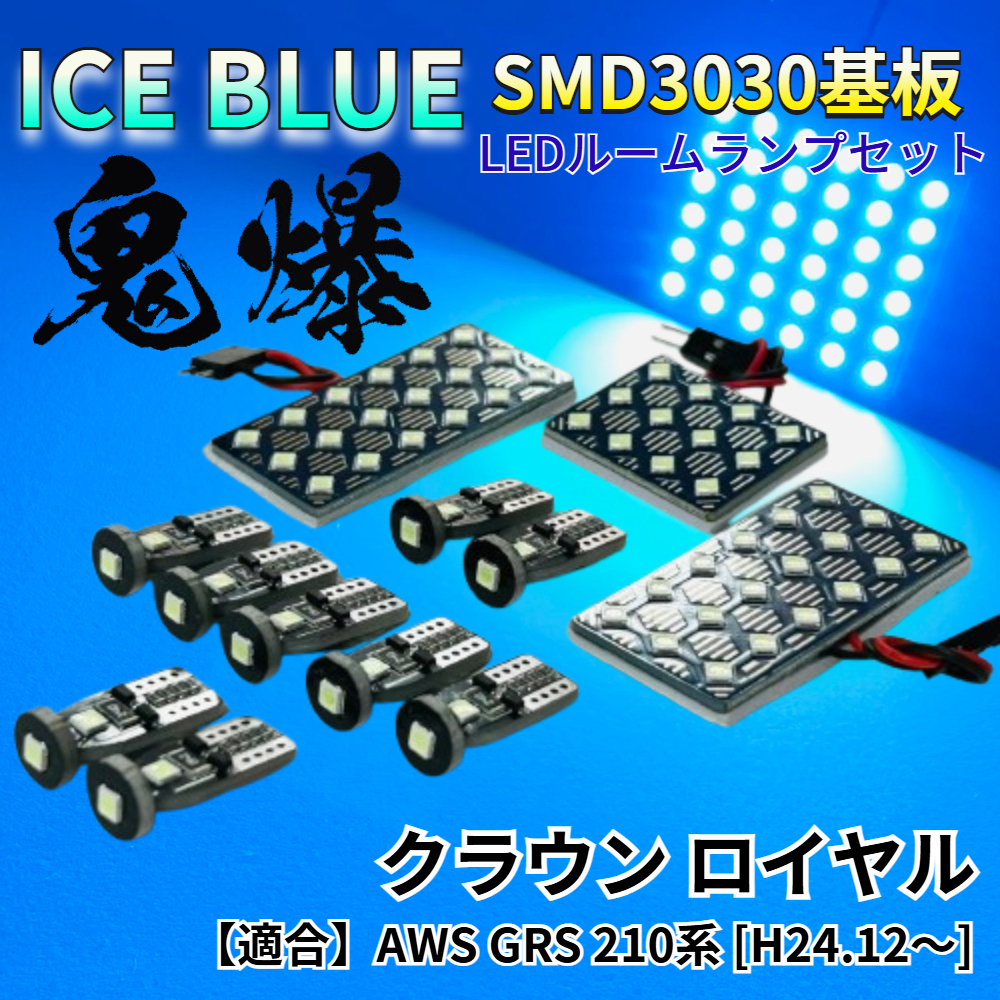 - 【アイスブルー】クラウン ロイヤル AWS GRS 210系 鬼爆基板 3030SMD LED ルームランプ セット 車内灯 室内灯 パーツ アクセサリ
