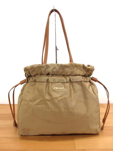 - 美品 プラダ BN1758 ロゴジャガード ナイロン 巾着 トートバッグ