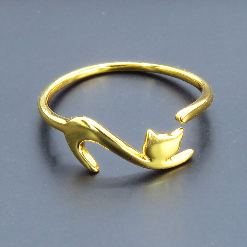 - シルバー925 繊細で柔らかいラインの猫シルエットモチーフリング フリーサイズ 18Kゴールドコーティング
