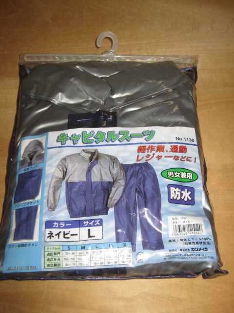 > キャピタルスーツ 男女兼用 防水 Lサイズ (身長:170~180cm) ネイビー 送¥600~ 雨具 かっぱ カッパ レインコート