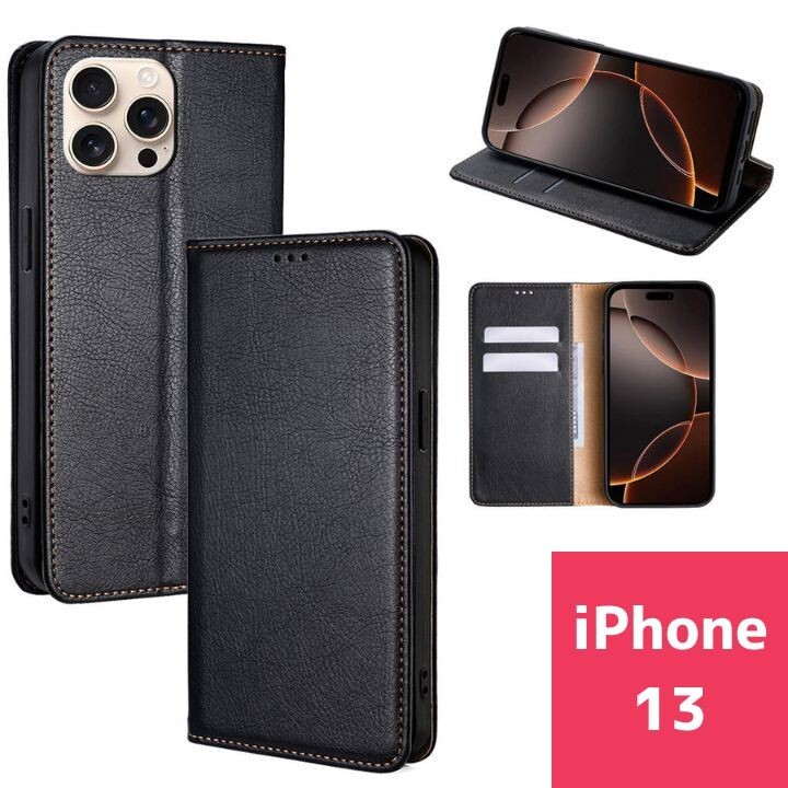 - iPhone13 ケース 手帳型 レザーケース 高見え 韓国 ブラック 人気
