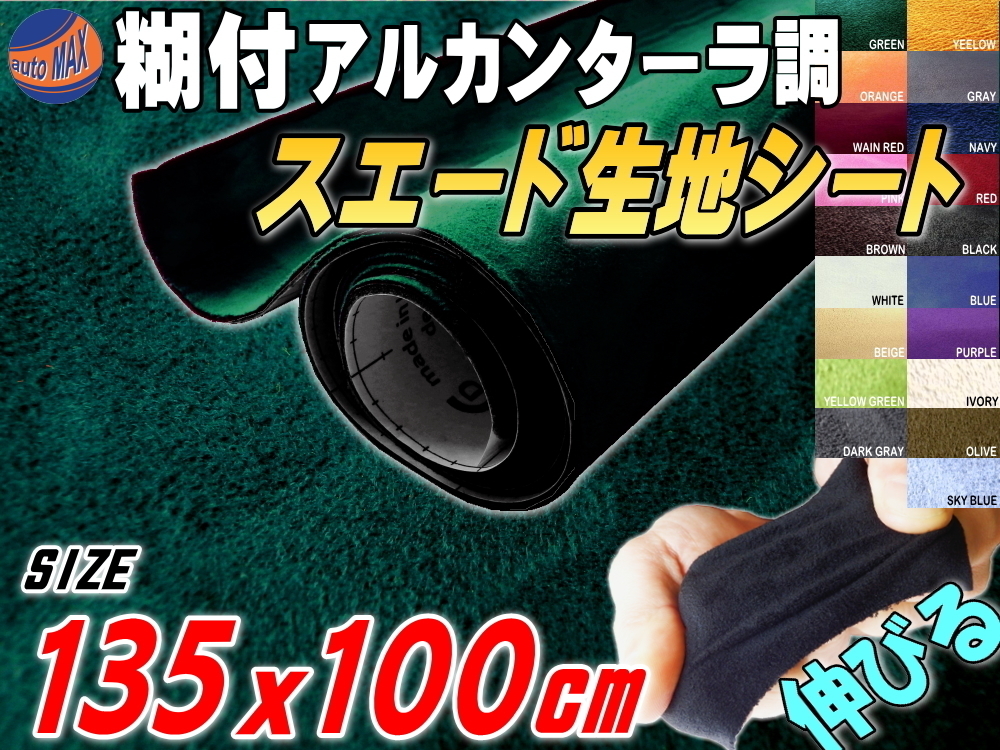 > スエード(大)緑 幅135×100cm伸びるアルカンターラ調スウェード生地スエードシート裏面糊付きカッティング可 シート内装ステッカー車 7