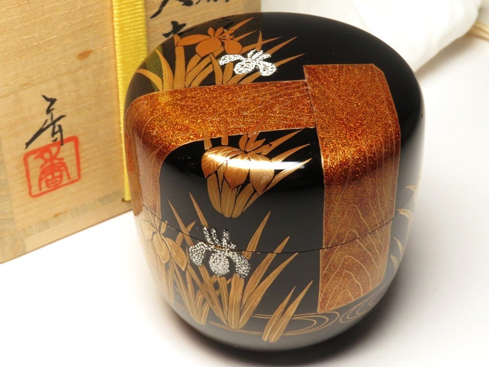 - 【9893】明治~大正 茶道具 八ツ橋 内銀地 大棗 作有り(初品・買取品)