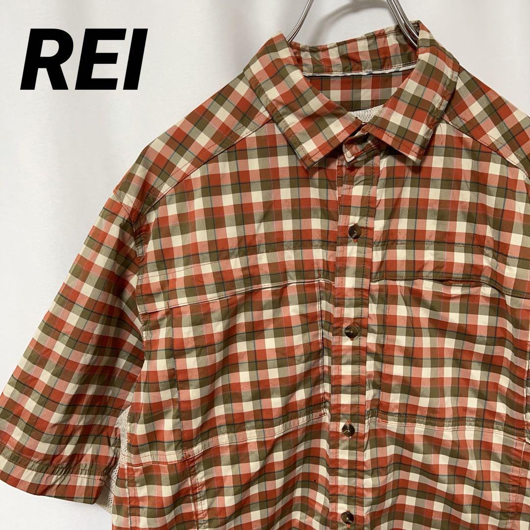 - N-3861 REI アールイーアイ アメリカ古着 フィッシングシャツ ユーティリティ ワーク チェック柄 半袖シャツ M ナイロン