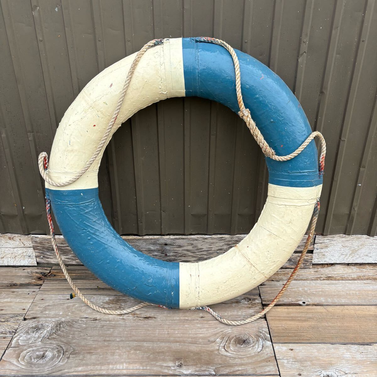 - アメリカビンテージ 船舶用救命浮き輪 ブルー×ホワイト 船舶装備