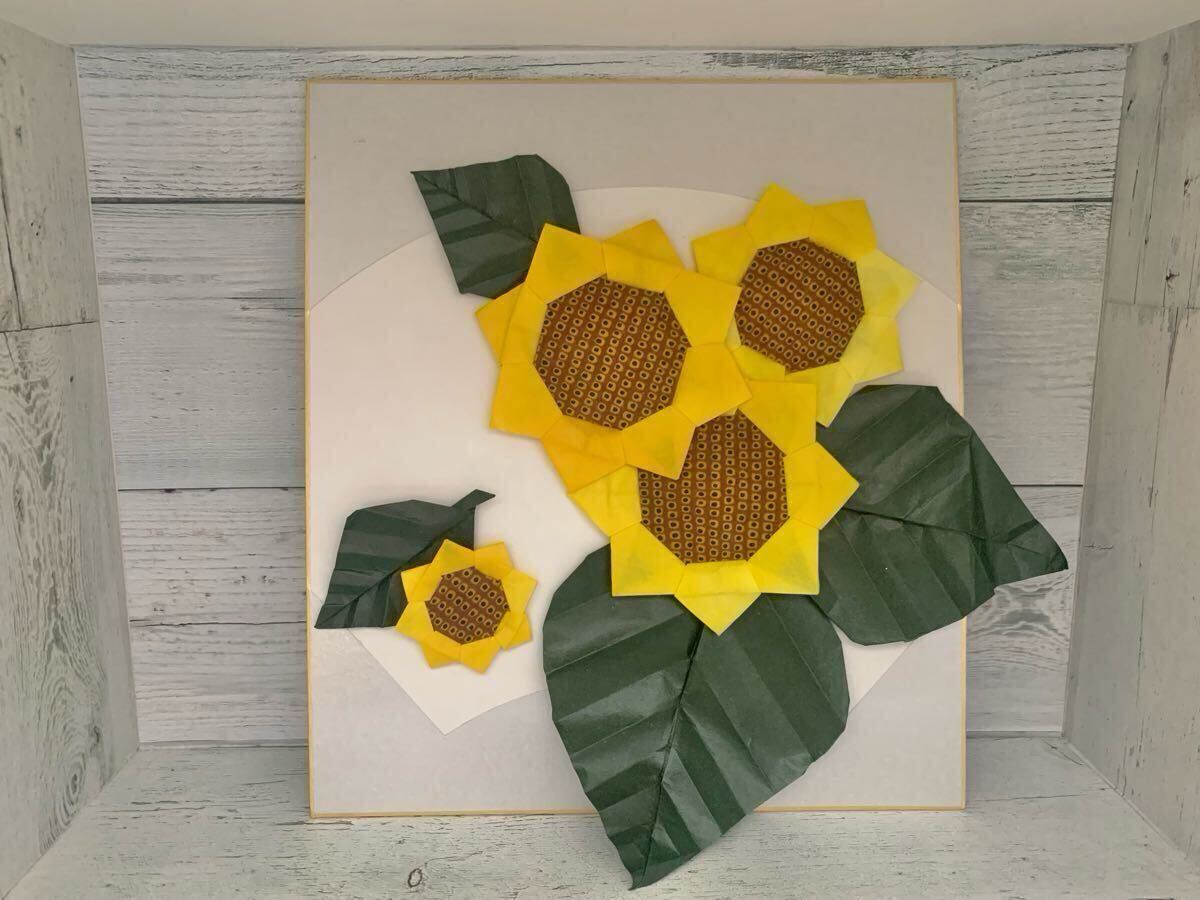 - 色紙 ひまわり 向日葵 折り紙 ハンドメイド 夏の飾り 飾り 置物 玄関飾り 壁掛け インテリア 花 造花 アートフラワー
