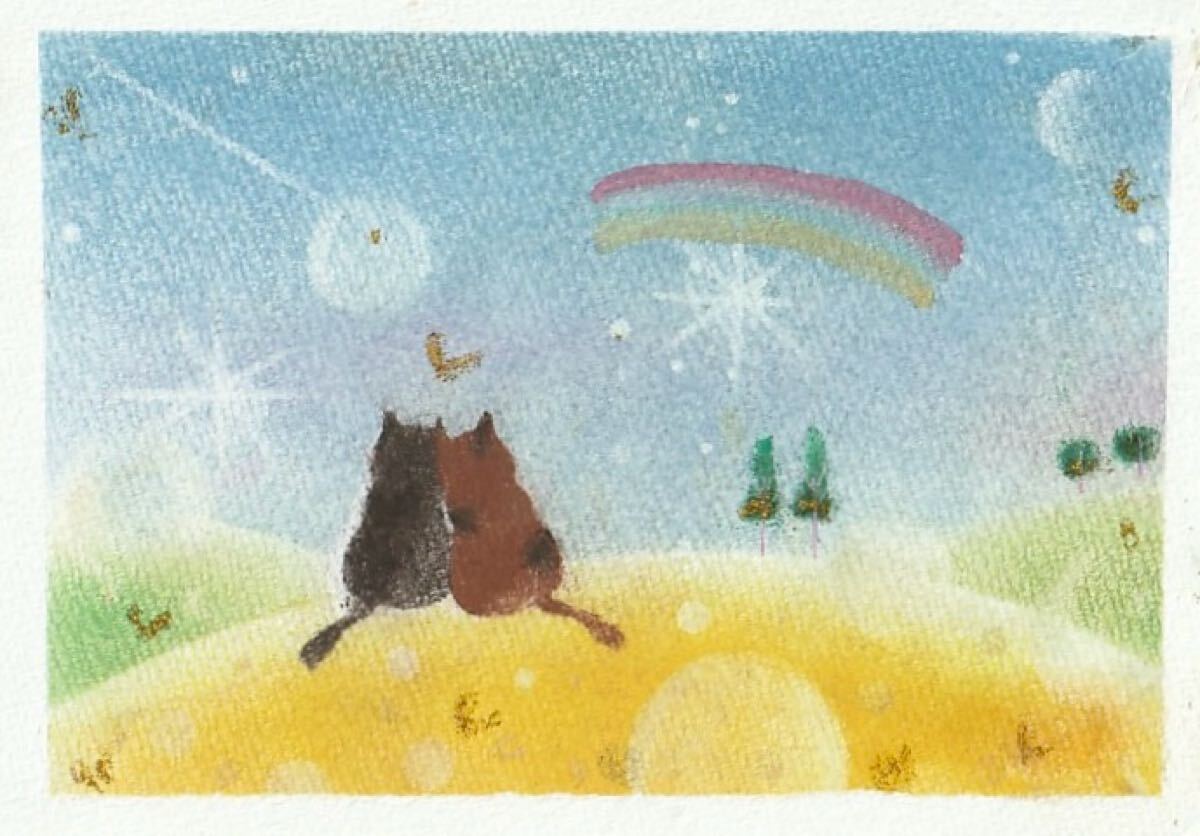 > 【Peace home】手書き 真作1点物 原画 絵画 直筆サイン 癒し 故郷 送料無料 匿名配送 happycolors 猫
