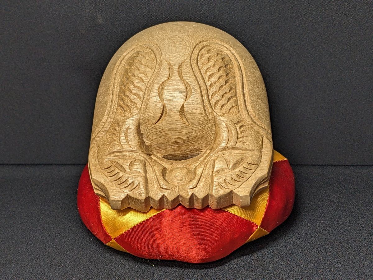 本体サイズ・木魚 幅約10.7cm 高さ約9cm 奥行約11.8cm/丸布団 直径約13.8cm 高さ約4cm。