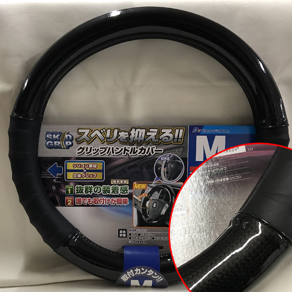 > シリコン素材立体グリップ採用 スキッドグリップ ステアリングカバー Mサイズ(38.0~39.0cm) ブラック/ブラックカーボン 黒