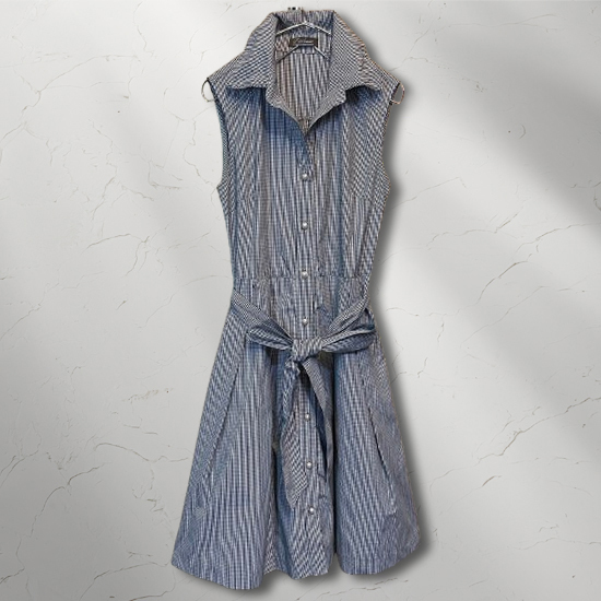 > Tiaclasse ティアクラッセ ワイヤー入り衿 ギンガムチェック ベルト付き プリーツスカート ロングワンピース サイズ7