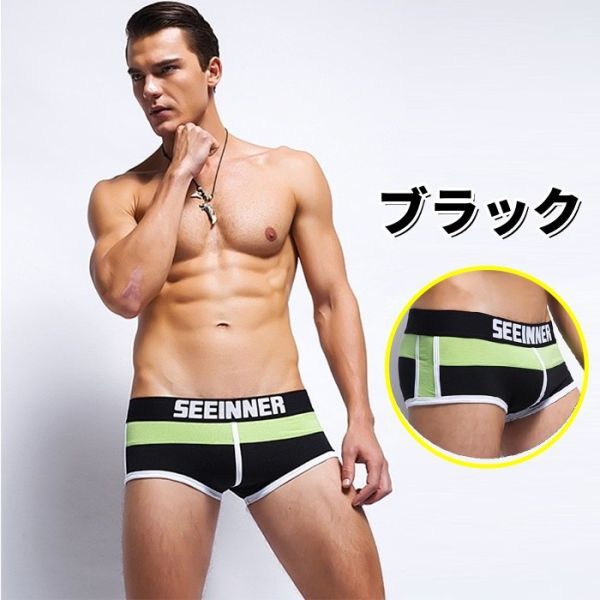 > ボクサーパンツ メンズ ブランド 下着 パンツ インナー ローライズ ボクサーパンツ メンズ下着 上向き 下向き PJ0019 黒 M