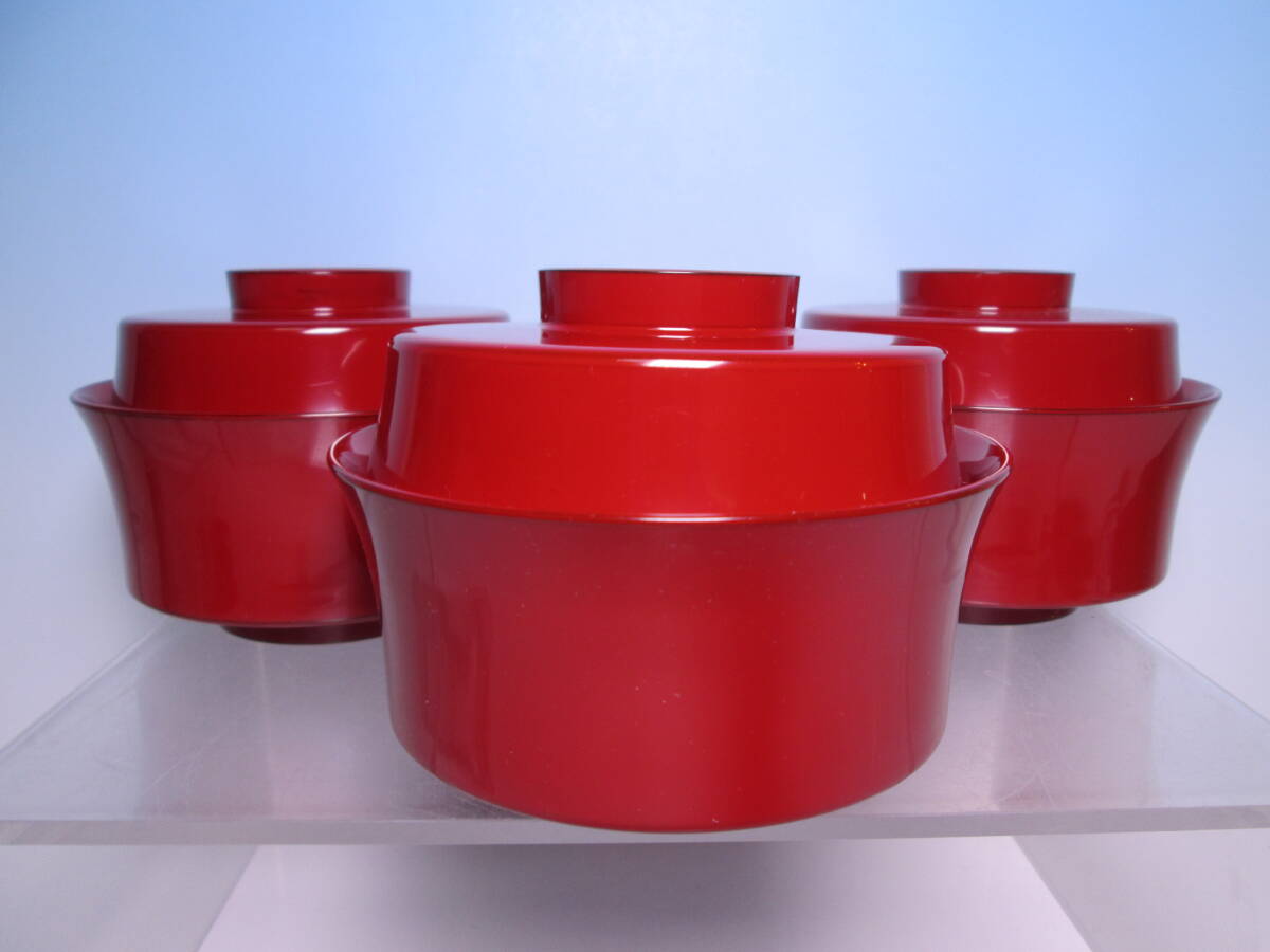 - ☆お料理屋さんの器 朱塗 煮物椀 三客 箱無 蓋椀/お椀/茶懐石/割烹/日本料理