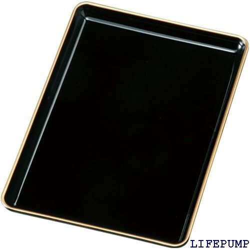 - 藤代工芸 切手盆 名刺盆 黒無地・金縁付き PC 7寸 金縁付き 日本製 国産 紀州塗 漆器 8326