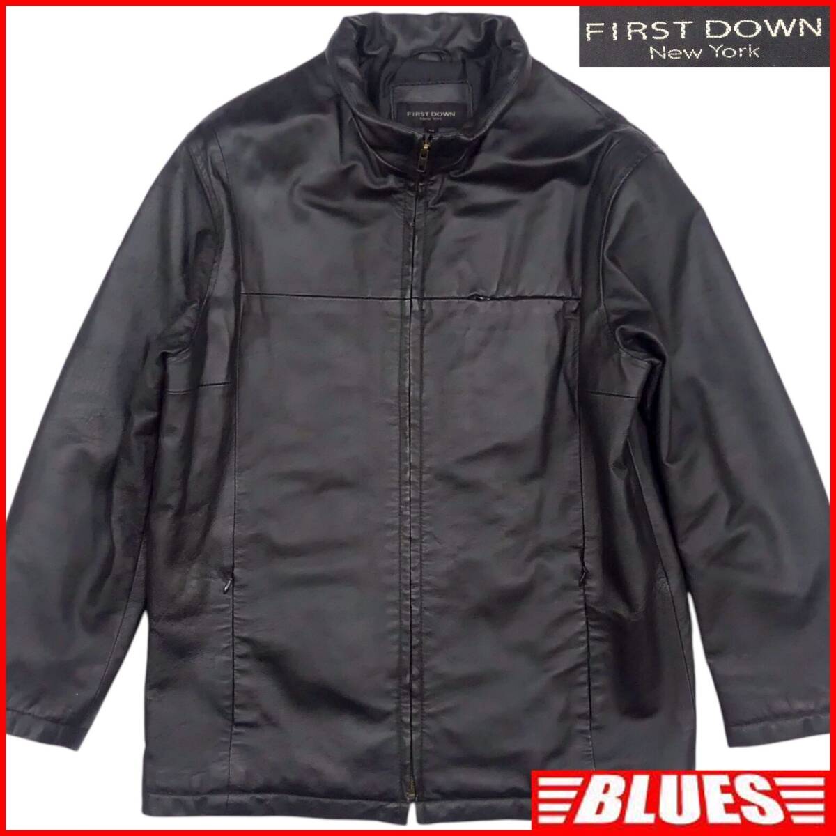 - 即決★FIRST DOWN★レザージャケット M スタンドカラー 黒 中綿入り ミドル丈 本革