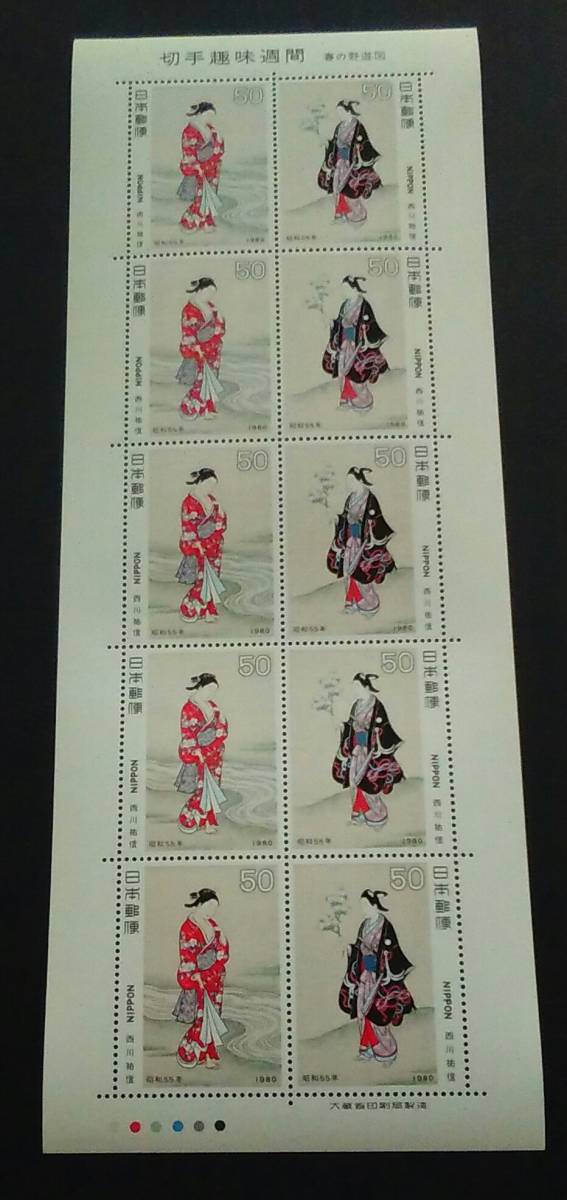 - 1980年・特殊切手-切手趣味週間シート(春の野遊図)