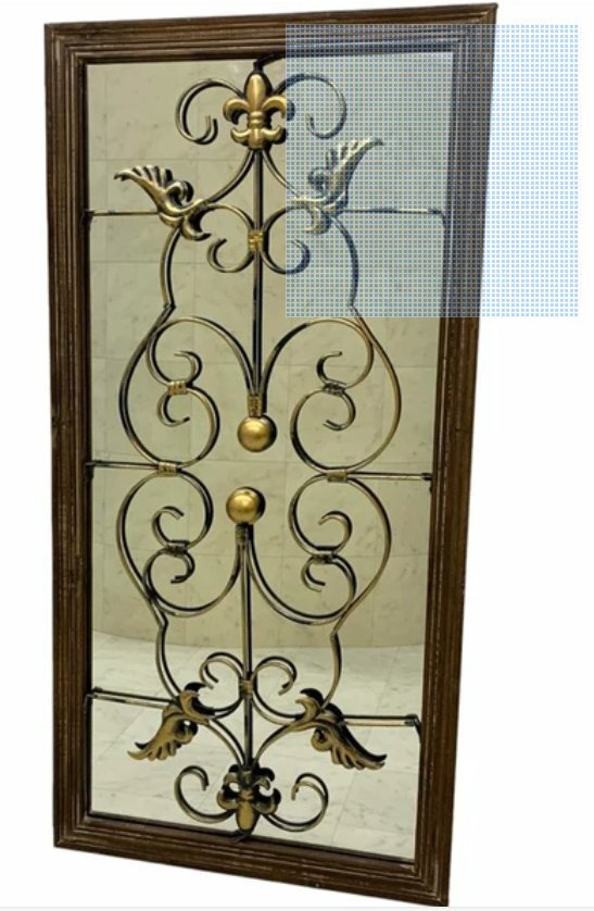 - モダンアンティーク調 ブラウンウッド木枠 ゴージャスゴールド色 窓型ウォールデコレーション 裏面 ミラー