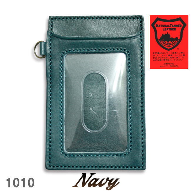 - ネイビー 栃木レザー 1010 本革 牛革 日本勢 パスケース メンズ レディース