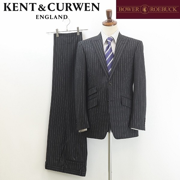 > 美品◆KENT&CURWEN ケント&カーウェン×BOWER ROEBUCH社 ストライプ柄 ウール 2釦 スーツ セットアップ チャコール 92A5
