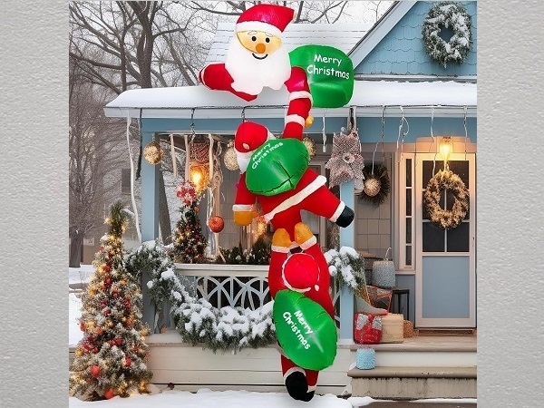 - V-Dank エアー サンタクロース エアーディスプレイ 三つのサンタ 新品 屋外 装飾 壁登り 屋外 高さ245cm 光る 膨張式 LED付 装飾 防水 屋外