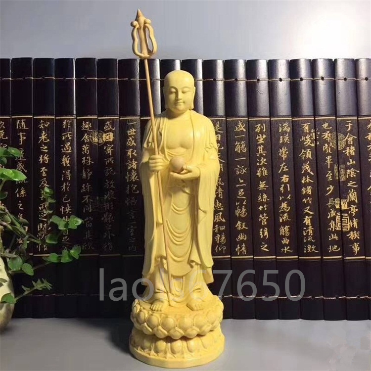 - 仏像 柘植木彫 禅宗 彫仏像 地蔵菩薩 仏教美術 東洋彫刻 蓮華丸台座 立像 GYP004