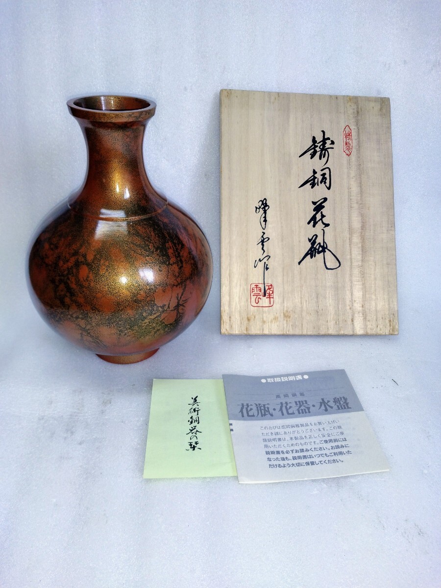 - K45【未使用】 峰雲 鋳銅花瓶 高岡銅器 鋳銅 花瓶 花入 花器 長期保管