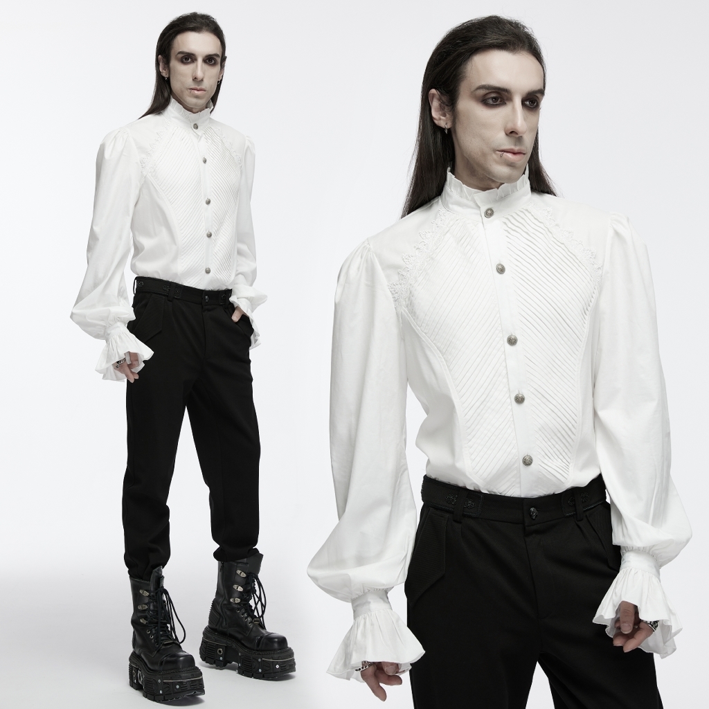- 即納 WY-1676CCM-WH-M フリルスタンドカラー ホワイト ブラウス 紳士 ジェントルマン 貴族 スチームパンク ビジュアル系 ヴィジュアル系