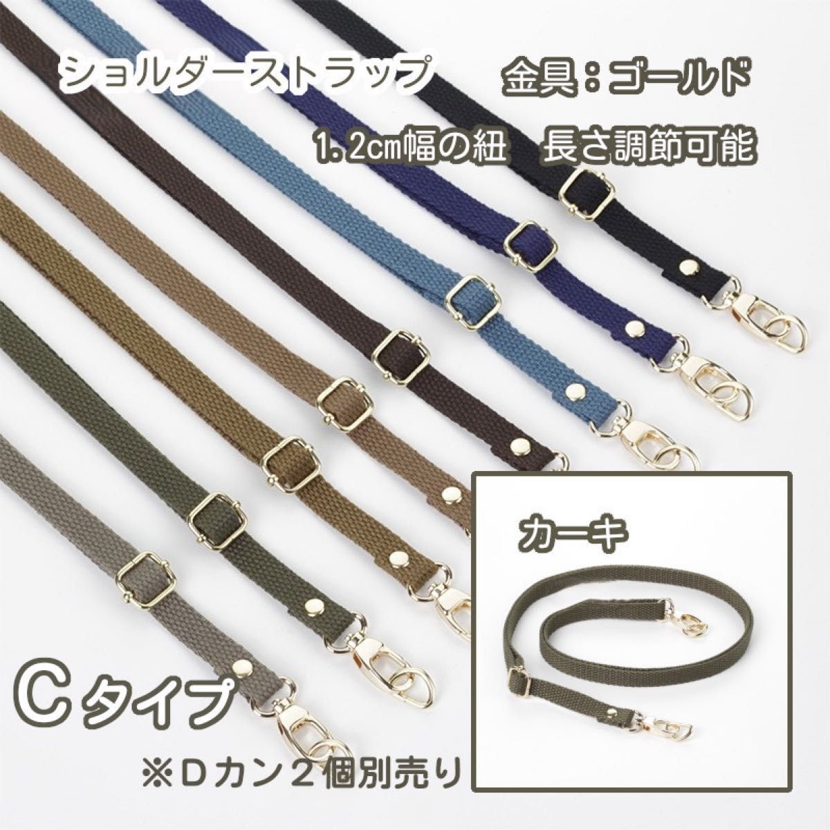 - Cタイプ ④カーキ ショルダーストラップ スマホ ポーチ バッグ キャンパス生地 がま口口金 15色